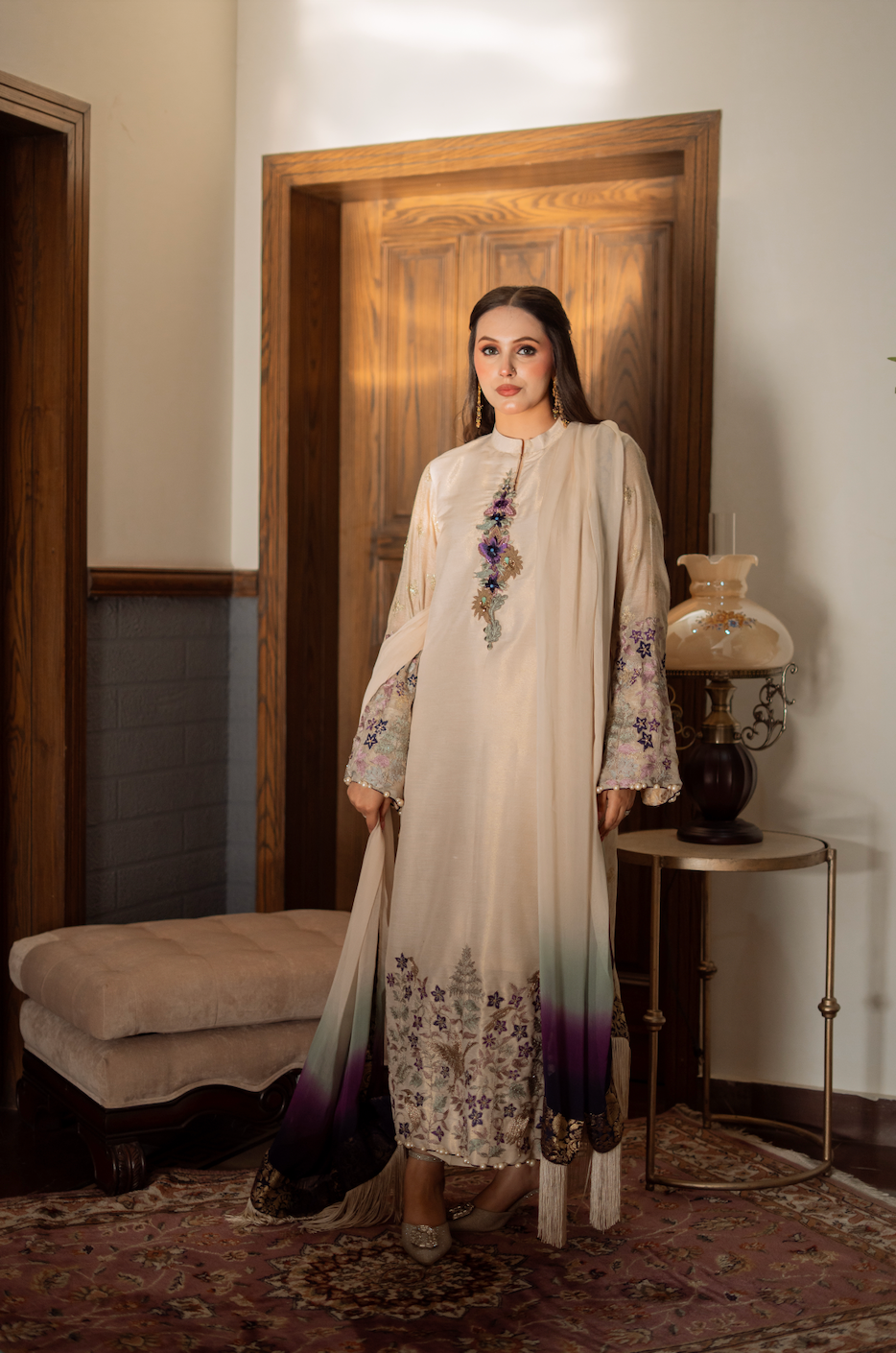 Experience the elegance of understated luxury with our Velvet Mist Silk kaftan, crafted in a...