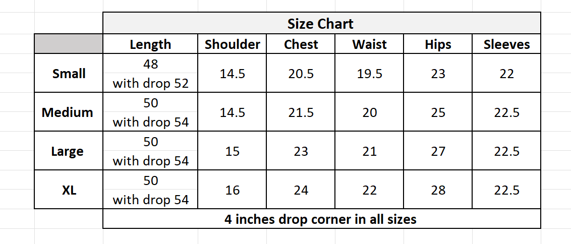 NOTE: 4 inches drop corner