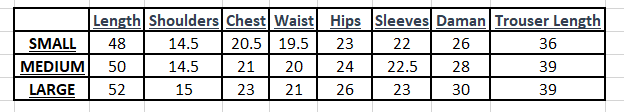 •Style: 3-piece suit – Kaftan-style shirt, trousers, and dupatta